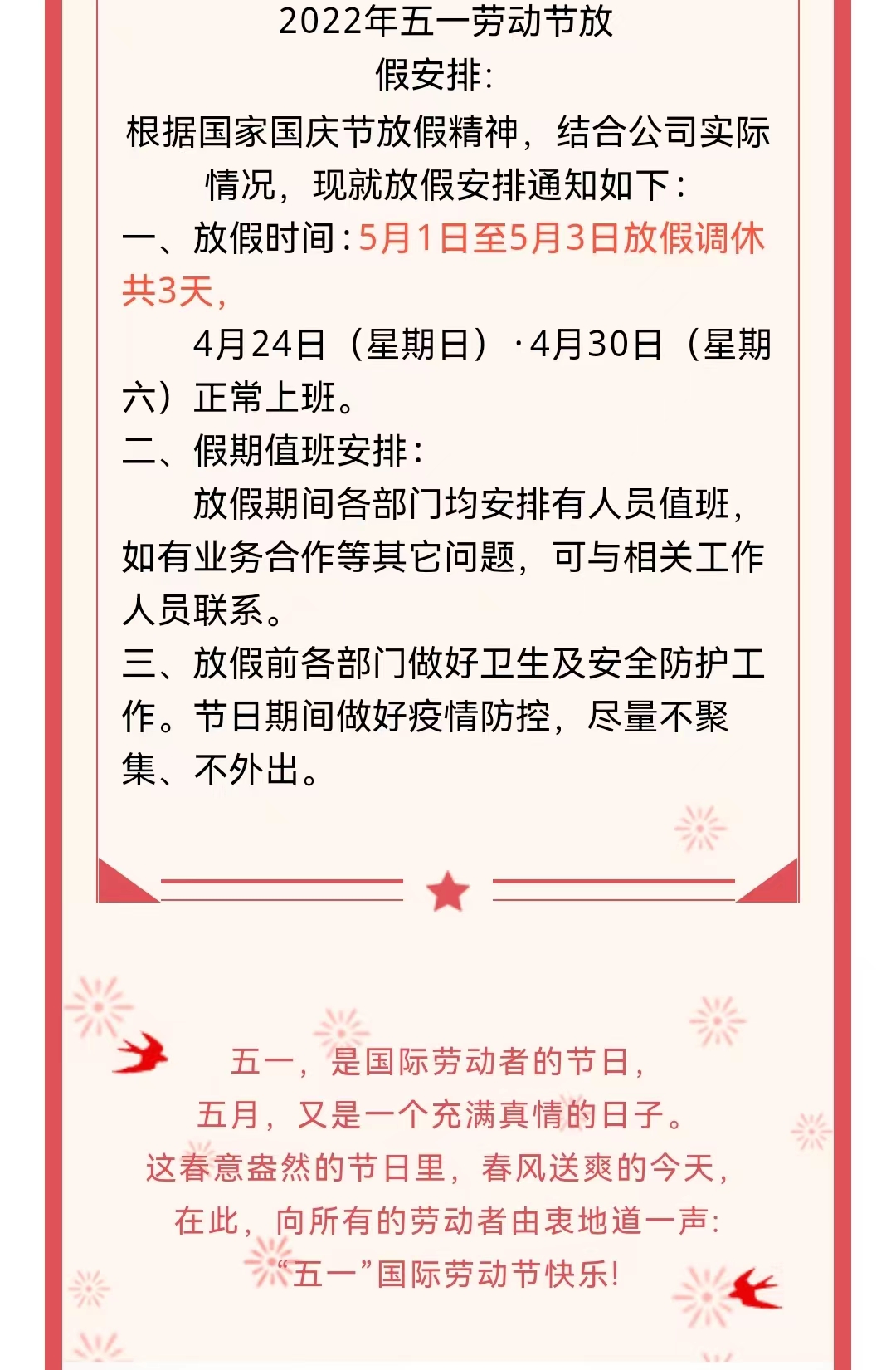 五一勞動節(jié)放假通知